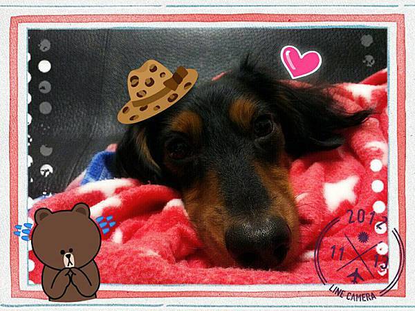 我陪小條睡地上(寵物沙發床都被我壓扁了XDD 這時候也覺得有止滑墊當地毯真好啊~)
